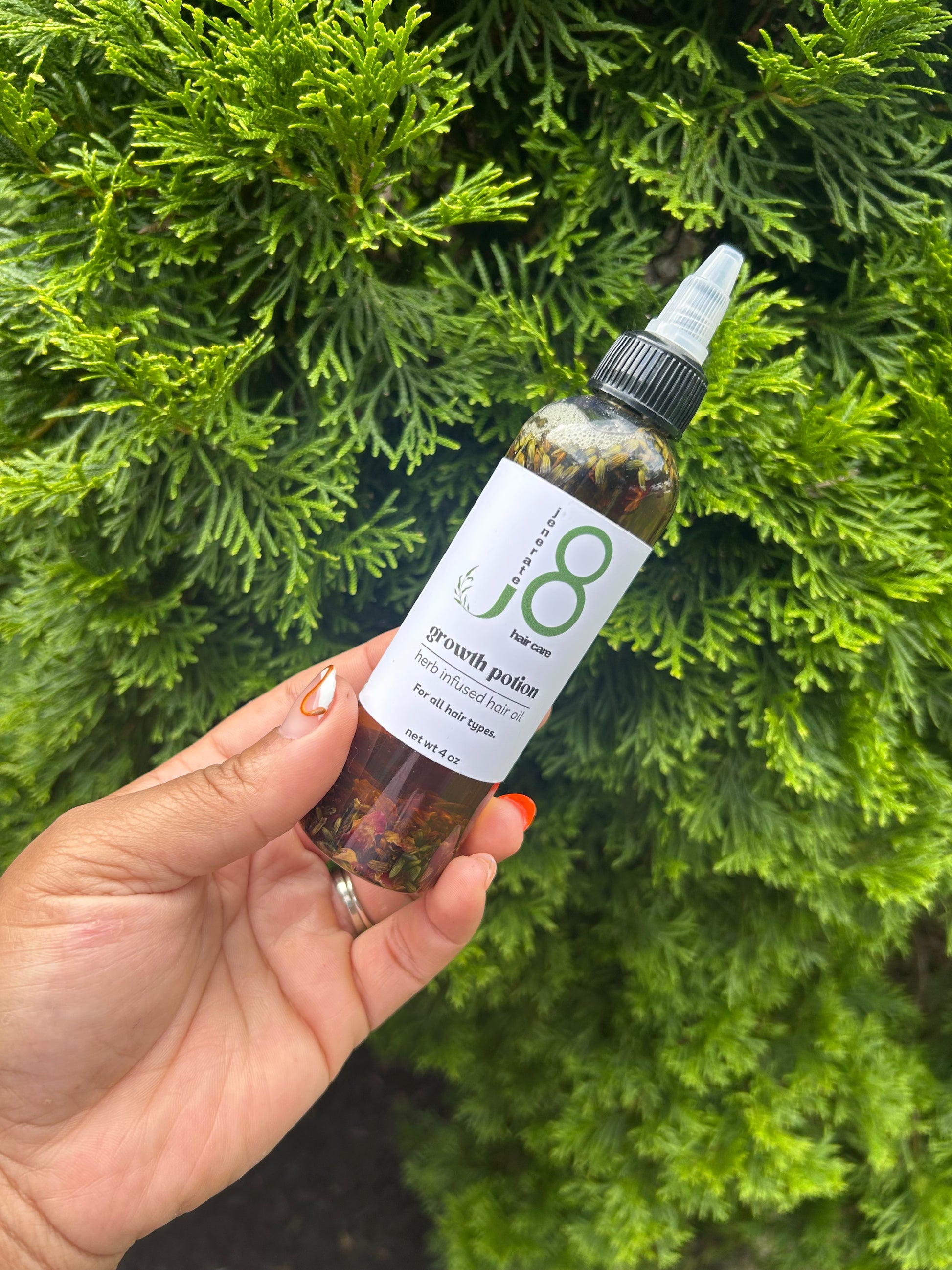 Introducing Growth Potion — the star of the show and your ultimate solution for stronger, healthier hair. This luxurious oil is infused with rose buds and lavender, along with a special blend of essential oils that work together to: